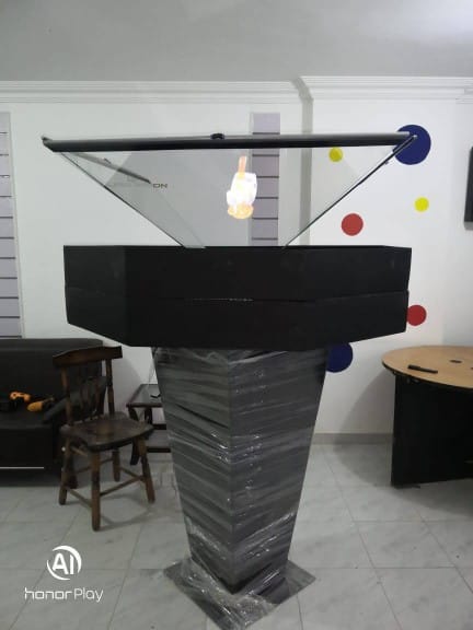هولوبكس عبارة عن صندوق تظهر بداخله صورة الفيديو الهولوجرام بشكل واقعى كانها تتحرك فى الفراغ بداخله بحيث