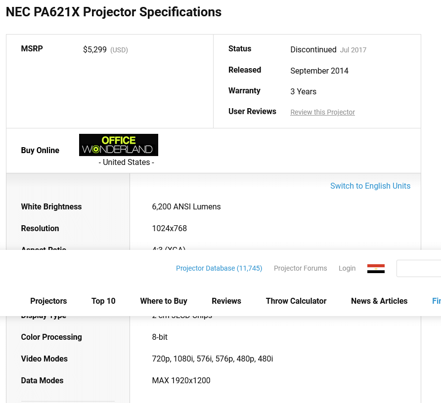 NEC PA621X Projector